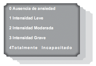 Se trata de un instrumento simple compuesto por catorce preguntas impresas. De selección múltiple del nivel de ansiedad que genera cada pregunta. La cual puede ser respondida de acuerdo a los siguientes valores: