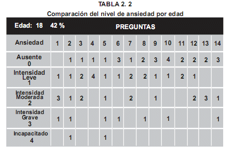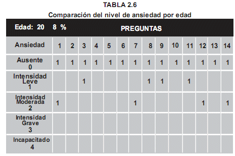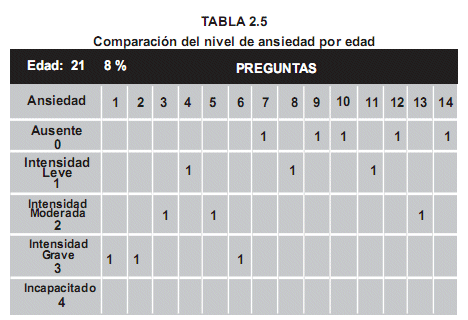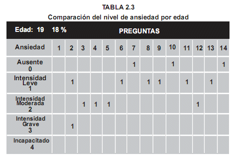 En las Tablas que siguen se observará que a medida que la edad incrementa, las respuestas muestran menor nivel de ansiedad.