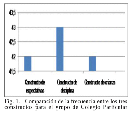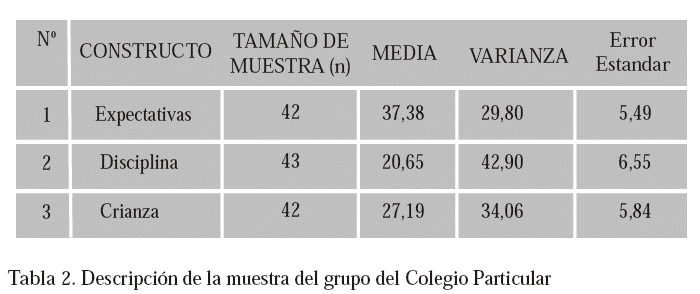 Asimismo, tanto el constructo de Expectativas como el de Crianza son más bajos que el constructo de Disciplina en el grupo Particular. Además el constructo de Expectativas y el de crianza tienen el mismo nivel.
