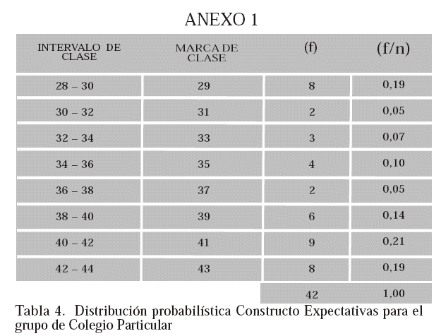 Por lo que se puede afirmar con un 95% se certeza, que no hay diferencia en el constructo Expectativas entre las escuelas privadas y públicas de la ciudad de La Paz