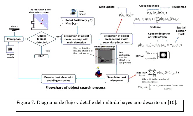 En el trabajo de Loncomilla et al. en (Loncomilla P., Ruiz del Solar J. y Saavedra M., 2013), se presenta un marco bayesiano para una búsqueda informada usando convoluciones entre verosimilitudes de observaciones y máscaras de relación especial, presentado así una mejora al trabajo presentado en (Aydemir A., Sjöö K. y Jensfelt P., 2010). Se puede observar que la tasa de detección aumenta considerablemente usando este nuevo método.