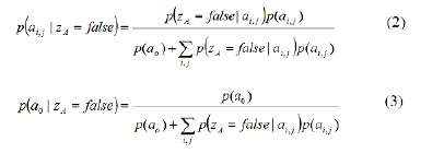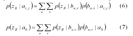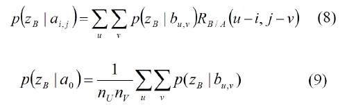 Los términos p( zB | aij ) y p( zB | a0) serán llamados verosimilitudes-cruzadas, ya que relacionan la detección de un objeto secundario B, con la presencia del objeto principal A en el mapa. Estas probabilidades pueden ser derivadas considerando las probabilidadesp(buv) para la presencia de un objeto secundario B, en las localizaciones (u,v) de la grilla: