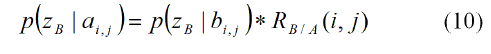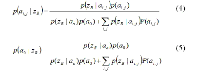 El objeto secundario B, puede provocar detecciones positivas y negativas zb, que se puede utilizar para calcular la actualización de la probabilidad: