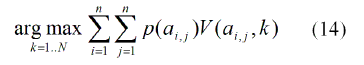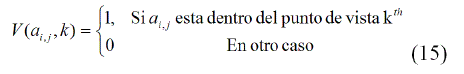 Donde N es el número de poses candidatas plantea, y V(aij, k) es definida como: