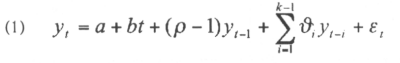 In fact, since Nelson and Plosser's (1982) paper, the unit root property of macroeconomic data is proven to be widely accepted. Thus, the Augmented Dickey and Fuller (1979) (ADF) test is generally used as in the following form: