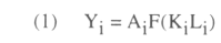 According to equation (1) the following is true ∂Yi/∂Ai= F(KiLi) and Ai= Yi/F(KiLi). Thus, we replace these definitions in equation (5) to get