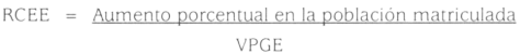Teniendo en cuenta que no existe información estadística disponible para la serie de tiempo del gasto en educación que date del año 1992 que coincida con la información censal de ese mismo año para la tasa de analfabetismo, el indicador de efectividad del gasto en educación que se utilizará para medir la relación costo-efectividad, RCE, es el cambio en la población matriculada inicial, primaria y secundaria del sector público. Por tanto, la RCE que se medirá es la siguiente: