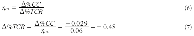 Para calcular la variación del tipo de cambio que cerrará la brecha de la cuenta corriente se emplea la elasticidad de la cuenta corriente (cc) al TCR, que se calcula a partir de la siguiente ecuación: