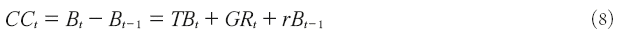 Donde CCt,Bt, TBt, GRt y r son la cuenta corriente, los activos externos netos, el saldo comercial, las donaciones externas o remesas y la tasa de interés, respectivamente.