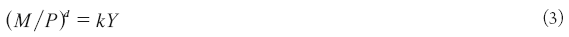 Where k is a constant of the proportion of money that the public is willing to hold for every unit of income. Equation 3 states that the quantity of real money balances demanded is proportional to real income.