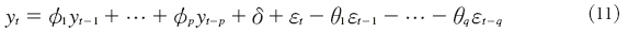 The Autoregressive Moving Average (ARMA) (p,q) is represented by: