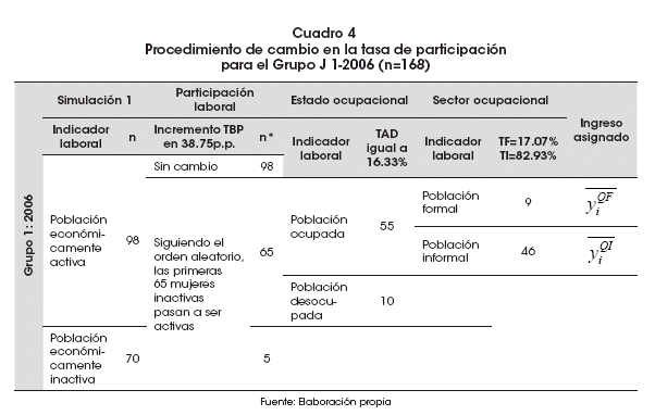 5 En cada simulación se calculó el promedio de los ingresos por cuartil. Estos promedios se asignaron a los nuevos ocupados, o a ocupados existentes que cambiaron de sector laboral.