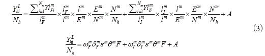 . A su vez, siguiendo a Hernani-Limarino y Mena (2014), cada fuente de ingresos puede ser representada por su nivel de remuneración promedio ω, la proporción de la fuerza laboral formal e informal δ y el nivel de utilización de la fuerza laboral. Este último se define a su vez por las tasas de empleo remunerado, ε, participación, θ, y por la proporción de la población femenina elegible que forma parte del hogar, F.