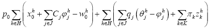 H definimos la utilidad asociada a las asignaciones (xh, φh, Dh, θh, zh) como: