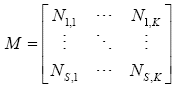 donde la matriz de pagos de los activos libres de riesgo N es una matriz de #Sx#K. Notar que como no existen activos redundantes en la economía, tenemos que #K ≤ #S. Ademas, es posible encontrar una sub-matriz no singular de dimensión #Kx#K. Específicamente, asumimos, sin pérdida de generalidad, que esta matriz está dada por: