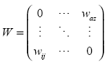 El arreglo W, donde tanto las filas como las columnas representan una región en el espacio objeto de estudio. Esta matriz puede estar determinada de la siguiente manera: