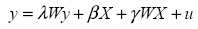 Este tipo de especificación introduce la dependencia espacial a la variable "y" considerada dentro de las variables explicativas, lo que indica la importancia espacial entre los vecinos de la variable dependiente.