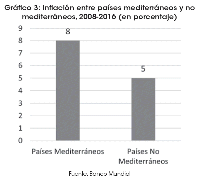 Otras variables macroeconómicas que podrían presentar diferencias sustantivas entre países mediterráneos y no mediterráneos, aunque más controvertidas, son, por ejemplo, la tasa de desempleo y el indicador de desigualdad de Gini que no son desarrolladas en este apartado (ver Anexo 4).