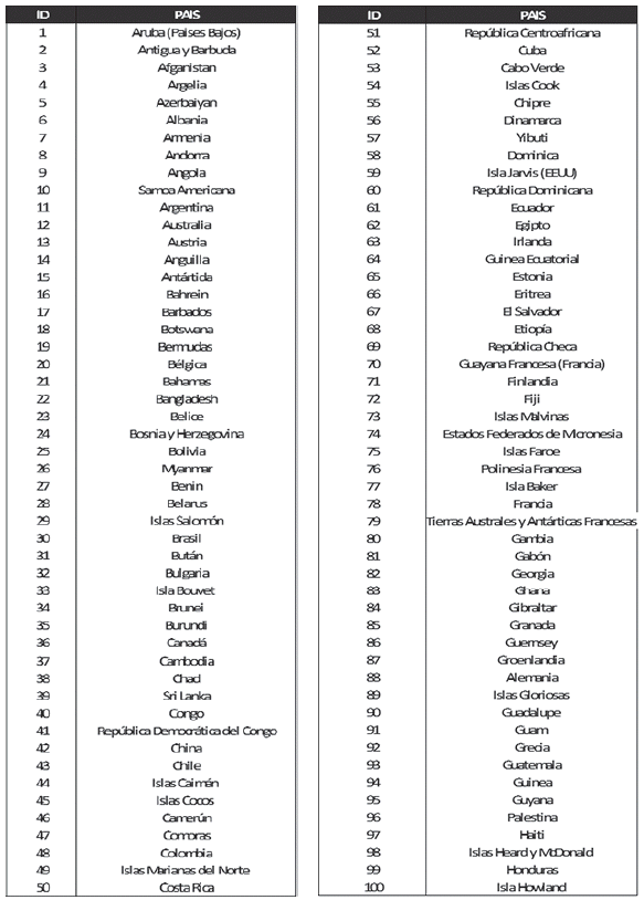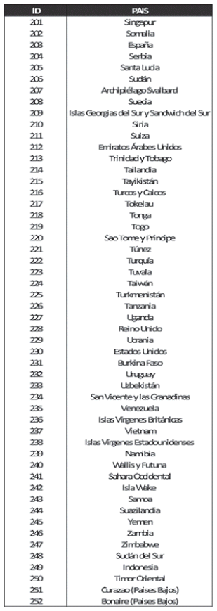 Lista de países considerados