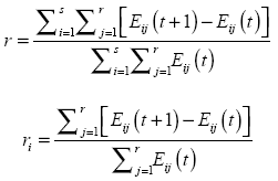 En resumen, ΔEij. representa la variación del empleo formal del sector privado en el sector i de la región j, Eij(t).r refleja el efecto nacional, [ri - r]Eij(t) constituye el efecto sectorial o estructural y [rij - ri]Eij(t) mide el efecto regional o competitivo. La suma del efecto sectorial y regional es conocida como el efecto neto.