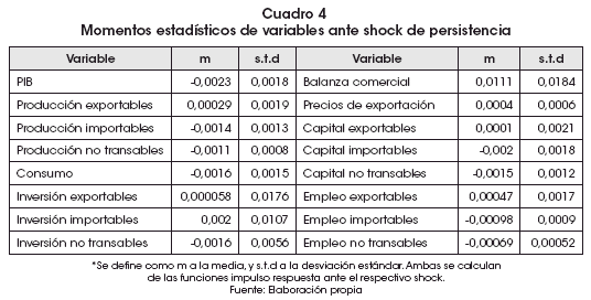 . El Gráfico 5 muestra la forma en que opera un shock de persistencia con las funciones impulso respuesta a 30 periodos.