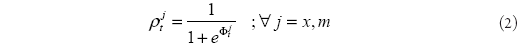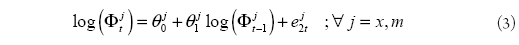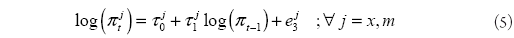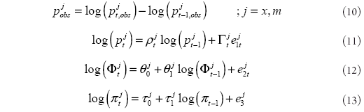 esté comprendido entre -1 y 1, por lo que el proceso autorregresivo no es explosivo. Asimismo, se utiliza una expresión de estado no observable para introducir los shocks de persistencia transitorios: