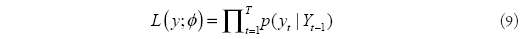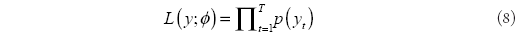La estimación por máxima verosimilitud consiste en un procedimiento de optimización de la distribución de probabilidad acumulada para encontrar los parámetros que hacen máxima la probabilidad de observar los datos disponibles. Por su parte, el filtro de Kalman puede construir recursivamente la función de verosimilitud, la cual se optimiza a través de métodos numéricos para obtener el set de parámetros deseados. El set de observaciones idénticamente distribuidas cuya función de densidad acumulada se representa como: