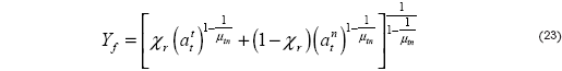 donde la producción del bien final Yf resulta de la combinación del bien transable compuesto