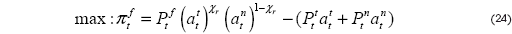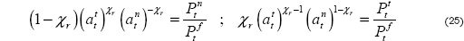 . La elasticidad de sustitución entre bienes transables se define como μtn, y χr es la proporción del gasto en bienes transables. Igualmente, se supone que μtn = 1, por lo tanto, el problema de maximización de beneficios es: