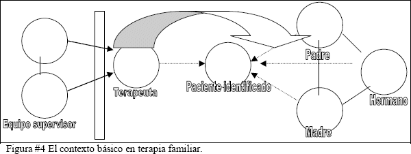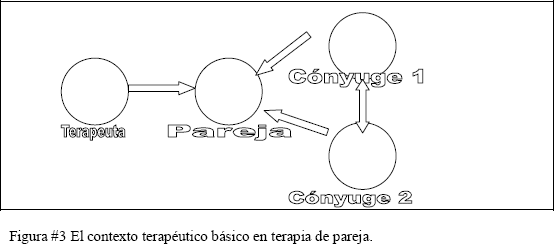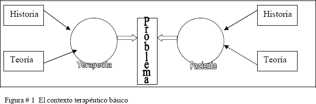 En la Fig. 1, se aprecia el diseño de la relación psicoterapéutica básica. El contexto del terapeuta a la izquierda del problema y a la derecha el contexto del paciente. En este encuentro se dan por lo menos dos configuraciones importantes, la configuración del problema y la configuración de las personas.