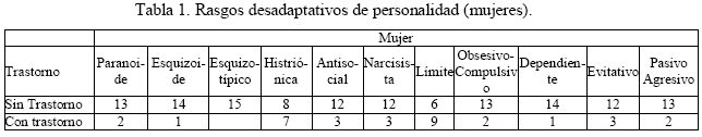 A nivel de sexo, las víctimas presentan rasgos desadaptativos de personalidad en primer lugar limítrofe y en segundo lugar histriónico, los drogodependientes presentan en primer lugar rasgos limítrofes y en segundo lugar paranoides (Ver Tabla 1 y 2).