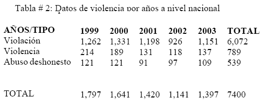 Con todos estos datos se puede ver que los casos de violación, violencia y abuso deshonesto continúan en nuestro país (Gutiérrez, Ochoa, Castillo. INE. 2004).