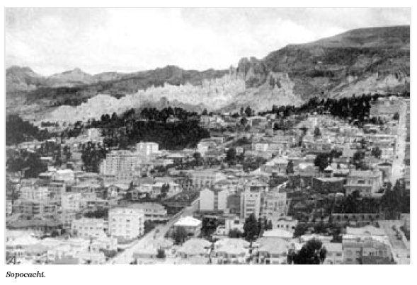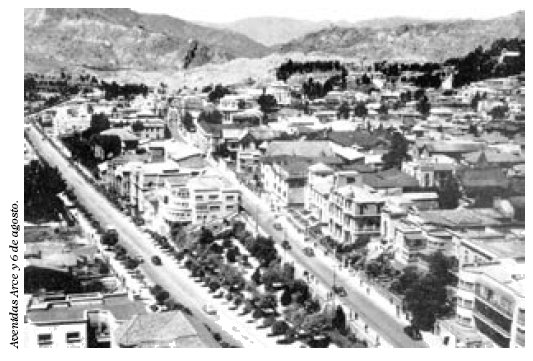 La Paz, divisada desde las alturas y en su aspecto general, produce enseguida la impresión de un terremoto detenido a tiempo para poder dar al viajero visitante la grata sorpresa de una hoyada llena de casas colocadas en pintoresco desorden. Se puede pensar absurda la creación de tal ciudad en una cuenca que sólo la mano del hombre ha podido despejar en reducidos planos para construir sus plazas, avenidas y paseos y si a esto se agrega que a los 3.600 metros sobre el nivel del mar, hay que sufrir las inevitables pendientes, su fundación sólo se explica con la codicia de los españoles que recogían el oro en las márgenes del Choqueyapu o el Orkho Jahuira, cuando el metal precioso daba a las aguas el aspecto de una cinta de plata con movibles orlas doradas.