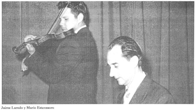 M. E.: No; [hice] sólo algunas pequeñas grabaciones accidentales. Por ejemplo, el concierto que hice con Jaime Laredo en Lima, después de que él recibió el premio de Bélgica. ¡Fue la última vez que toqué piano! Realmente desde entonces dejé la práctica personal del piano para dedicarme exclusivamente a la enseñanza.