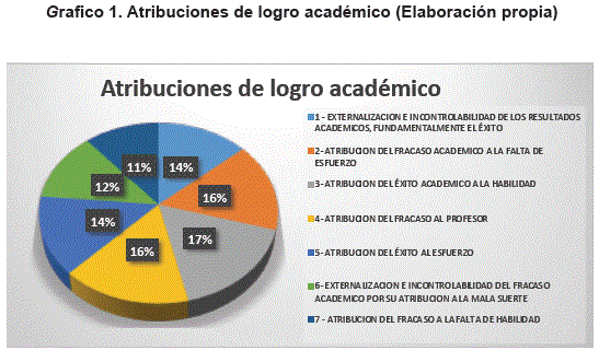 La investigación muestra como en el grupo, de forma general predominan diferentes ideas al respecto de éxito o fracaso; en general, se observa que la atribución a la habilidad es el de mayor aceptación, tanto en los logros académicos como en el de relaciones interpersonales. Y en caso de la atribución al fracaso del logro académico se atribuye la responsabilidad al docente o profesor. Poniendo en observación la diferencia de atribuciones en cuanto a situaciones satisfactorias o insatisfactorias se pueden internalizar o externalizar desde la percepción del sujeto.