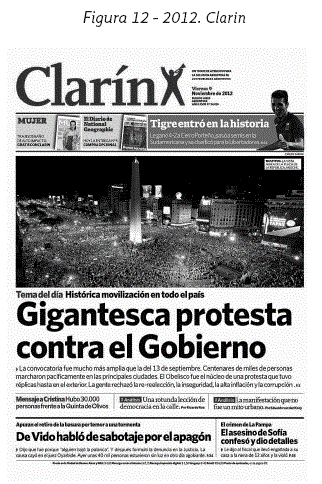 Tanto el cacerolazo del campo como el #8N permiten entrever cómo los medios construyen la polarización y se retroalimenta de ella. Para los tres medios ambas protestas son lo más relevante de la jornada, pero con encuadres sumamente diferentes. Mientras Clarín y La Nación informan, alientan y le dan forma a las protestas, Página/12 las cuestiona como manifestaciones de un sector privilegiado de la sociedad y promovidas por el arco opositor y los medios de comunicación. La perduración de estos encuadres en el tiempo es lo que genera que a largo plazo los lectores de Clarín y La Nación, por un lado, y Página/12, por el otro, cuenten con interpretaciones radicalmente diferentes sobre la realidad y el gobierno de Cristina Kirchner.