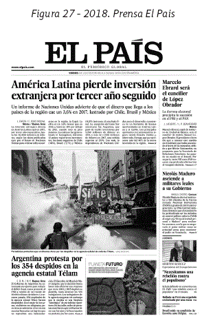 La invisibilización cobra más contundencia cuando la Edición América del diario El País de España ubica la manifestación en tapa y con un título que denota la gravedad de la situación: "Argentina protesta por los 354 despidos en la Agencia Estatal Télam". La noticia incluye una foto de la marcha sobre Avenida Corrientes con el Obelisco de fondo, un ícono de la Ciudad de Buenos Aires, y bengalas celestes y blancas.