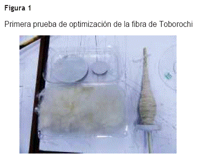 La abundancia y sedosidad de la fibra provocó la curiosidad sobre la posibilidad de hilar la misma para su uso textil. Para satisfacer esta pregunta se realizó una indagación empírica a partir de la consulta a productores de textiles locales, así como a mujeres hiladoras integrantes de diversas comunidades indígenas, respecto al uso tradicional de la fibra, además de la búsqueda de artículos científicos a través de Google académico y de Google para determinar la existencia de trabajos previos con fibra de Toborochi en el ámbito textil. En el mercado local, no se identificó ningún productor artesanal ni industrial que hilara la fibra de Toborochi, ni tampoco se pudo encontrar registro del uso tradicional de la fibra en el hilado en las comunidades indígenas locales. A nivel académico, solamente se encontró un estudio llevado a cabo en Bolivia por Villalta, Ayreyu, Mandepora, y Jarandilla (2020), quienes en un estudio sobre el textil isoseño, exploraron la posibilidad del hilado de fibra de Toborochi, afirmando que no era posible hilar el mismo, porque el hilo era muy frágil y se desataba con facilidad “En la comunidad hicieron la prueba de hilar con el fruto del toborochi (samoü), pero vieron que no era bueno, porque es muy frágil el hilo y se soltaba a cada rato ( Entrevista Barrientos, 2017) por lo que no podían concluir su trabajo”.