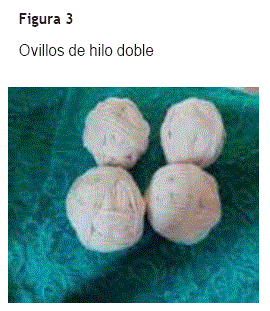 La primera prueba fue realizada a inicios del 2019. La cantidad que se encuentra en el envase plástico es la que permitió tener la cantidad de hilo hilado a la derecha de la imagen (Figura 6). El hilo que se encuentra en el huso es un hilo único, lo que quiere decir que no está en base a la unión de varios hilos delgados, es sólo un hilo.