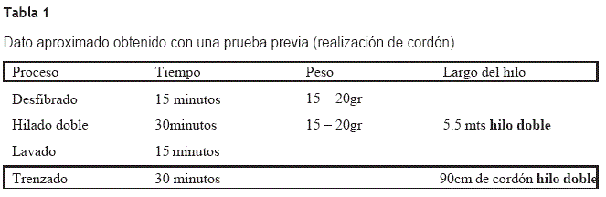 Uno de los puntos que queda aún ambiguo es el de las cantidades requeridas de fibra para fabricar cierto largo de hilos y el tiempo requerido para la tarea, debido a que el proceso aún ha sido ejecutado de manera artesanal, sin posibilidad de dedicación plena a la actividad.