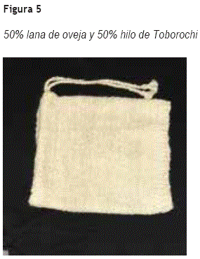 Se pudo realizar dos prendas a mano con hilo 100% de Toborochi y un vaso para el cual debe fabricarse una matriz de prueba (Figura 11 y 12).
