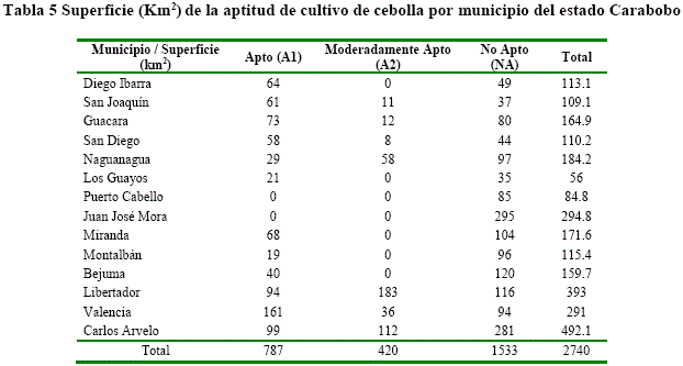En el presente estudio se determinó que los suelos en el valle de Chirgua y la llanura lacustrina de Guacara son aptos para el CC, coincidiendo con el reconocimiento a nivel nacional de las zonas por ser productoras de cebolla.