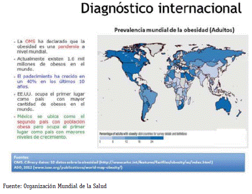 Se ha observado que desde 1980, la obesidad se ha incrementado en todo el mundo y que en 2014, más de 1900 millones de adultos de 18 o más años tenían sobrepeso (39%), de los cuales, más de 600 millones eran obesos (13%). La mayoría de la población mundial vive en países donde el sobrepeso y la obesidad se cobran más vidas de personas.