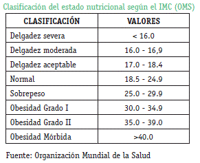 Y con el dato obtenido se clasifica según la tabla que nos presenta la OMS sobre el estado de nutrición.