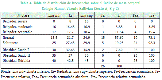 de masa corporal en estudiantes del Colegio Manuel Vicente