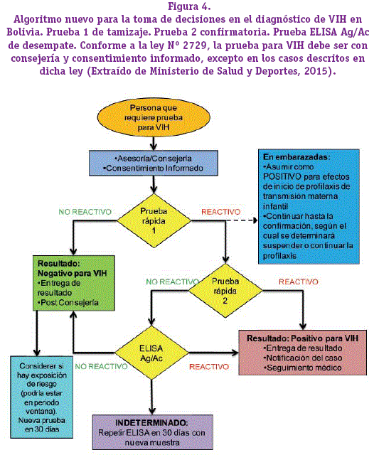 El Ministerio de Salud y Deportes de Bolivia ha propuesto la implementación de un algoritmo nuevo para el diagnóstico confirmatorio de VIH basado en dos pruebas rápidas y ELISA de cuarta generación.