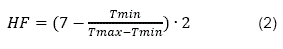 Dónde: Tmin = temperatura mínima (°C); Tmax = temepratura máxima (°C).