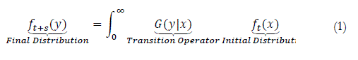 The transition probability operator (y|x), which is know as the stochastic kernel in the economic growth literature (Durlauf & Quah, 1999; Quah, 1997), maps the transition from time t to time t+s. Among other useful properties of this operator, Johnson (2005) shows that