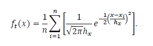 Similar to the bivariate case, a variable bandwidth hx +is adopted. This selection not only attempts to handle the variance-bias trade-off, but also should reduce the effects of outliers in the density estimation (Magrini, 2009).