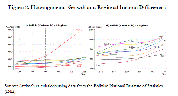 ††† See Machicado, Nina, & Jemio (2012) for a detailed survey of the heterogeneous growth patterns that characterize the behavior of the Bolivian regions.